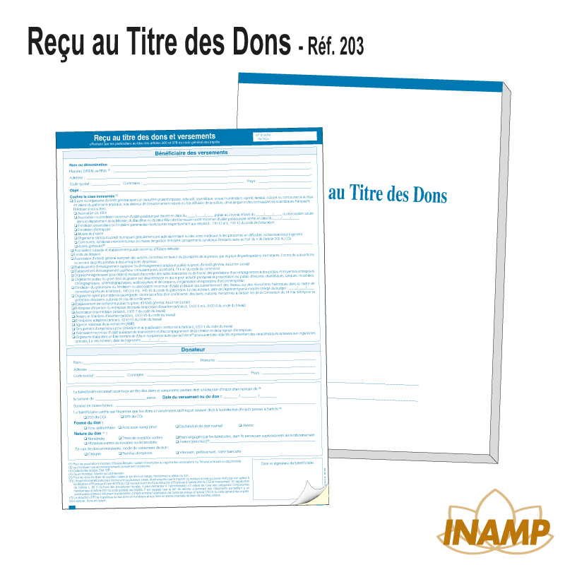 Lors de la réception de dons ou de legs, l'organisme ou l'association bénéficiare doit établir un Reçu au Titre des Dons selon le modèle légal.